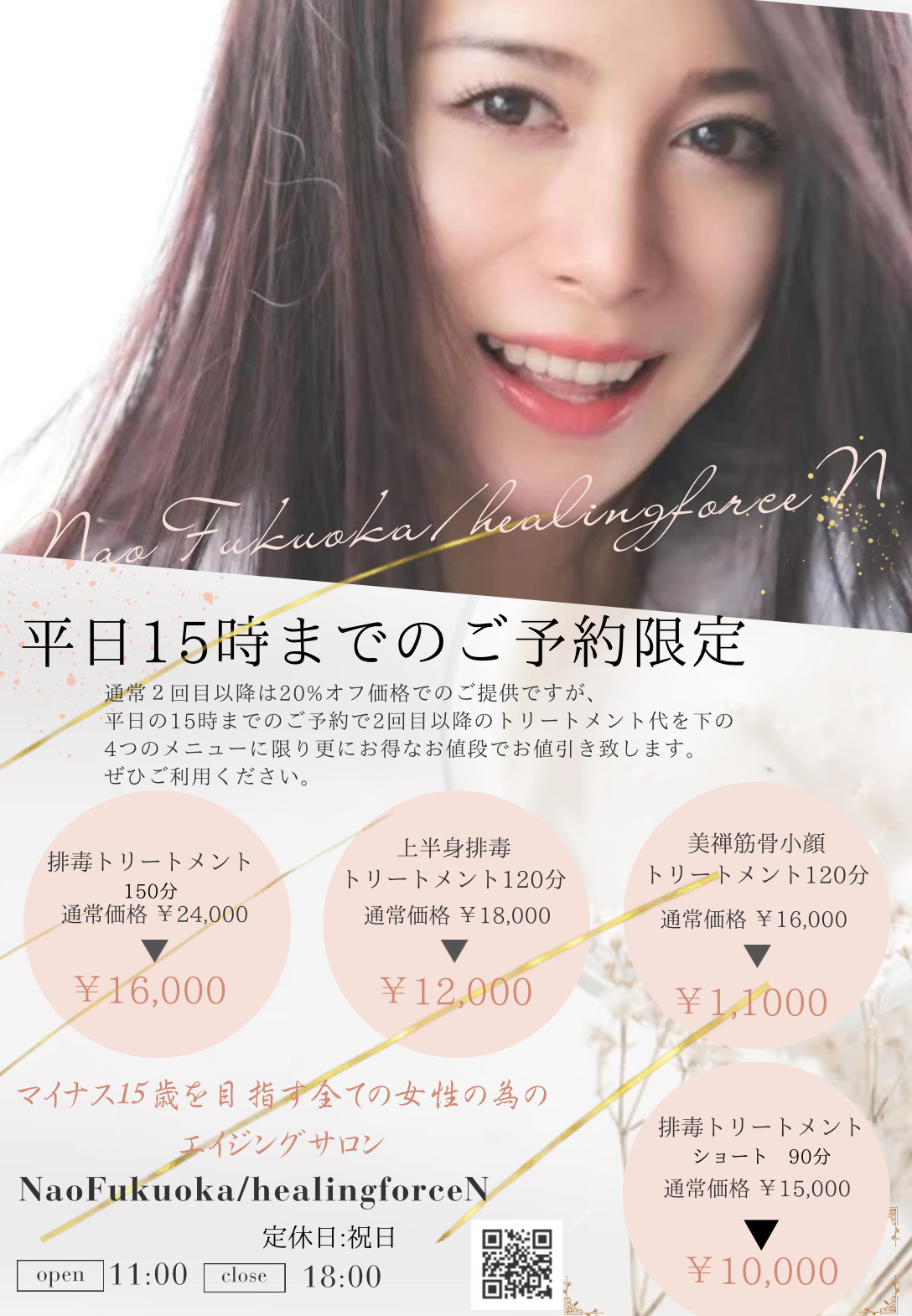 2回目以降のご来店で、全ての menu20%off(option menu除く)